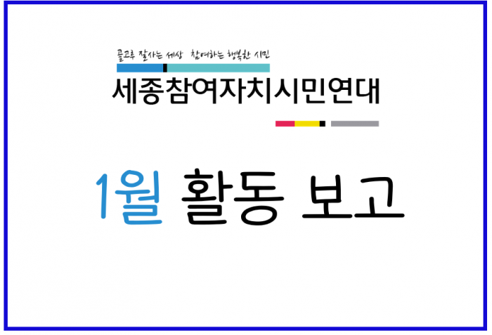 [세종참여연대 1월 활동보고]회원 여러분, 안녕하세요?세종참여자치시민연대 새해 첫 활동보고 드립니다.Ⅰ. 신년...