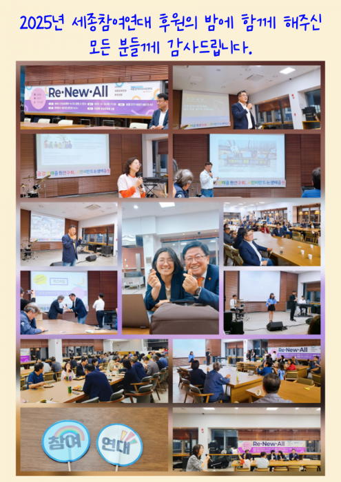 어제 진행할 때 공연 리허설과 겹쳐져 보여드리지 못한 세종참여연대의 2025년 활동 영상을 공유드립니다.