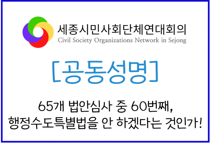 [공동성명] 65개 법안심사 중 60번째, 행정수도특별법을 안 하겠다는 것인가!