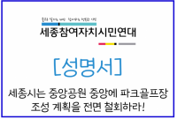세종참여자치시민연대성명 세종특별자치시 한누리대로 2275 알파메디컬센터 621호 전화 044-868-0015 팩스 044-868-0016 홈페이지 www.sjcham.kr 이메일 sejongcham@gmail.com==============================================================================제 목 / 세종시는 중앙공원 중앙에 파크골프장 조성 계획을 전면 철회하라!모두를 위한 공원을 일부를 위한 시설로 바꿀 수 없다.세종참여자치시민연대(상임대...세종참여연대2025-11-06